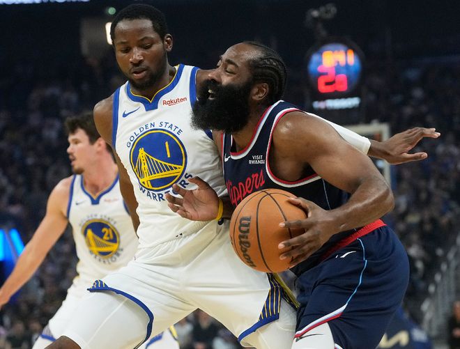 中场休息时不知道科尔给勇士众将说了些什么,他们的体能一下变得充沛起来开场就打出14-6直接反超,随后快船神奇的就崩盘了各种失误+打铁,勇士这一节单节净胜18分拉开差距,库里、巴特勒、波杰三人得分也上双了,第三节哈登得分挂零,小卡第三节只拿4分,快船双核沉寂十分难受。